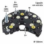 Nota: o parafuso B+ deste retificador tem 23mm de comprimento, medidos da ponta do parafuso até a superfície do retificador. O retificador tem 8 diodos de 50A cada e possui triodo.