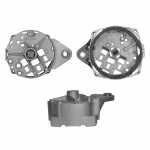 O mancal traseiro faz o fechamento do alternador. Cada mancal é feito com uma estrutura que assegura a absorção de esforços radiais e axiais e permite os regimes de rotação que o motor exige.