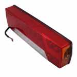 BrasluxBL8042.LD.100Lanterna traseira multifunção (freio / pisca / posição / ré) LED 12V retangular 372x104mm bicolor (cristal / vermelha) lado direito sem luz de placa com luz de neblina com conector e conexão de fio Agrale universal caminhão carreta carroceria implemento r