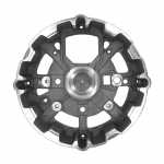 O mancal traseiro faz o fechamento do alternador. Cada mancal é feito com uma estrutura que assegura a absorção de esforços radiais e axiais e permite os regimes de rotação que o motor exige.