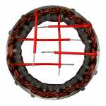 No estator é produzida a corrente elétrica do alternador, induzida pelo campo magnético que age nos fios das bobinas do estator.