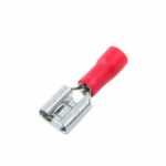 Terminal fêmea sem trava fabricado em material laminado, normalmente cobre estanhado ou latão estanhado.