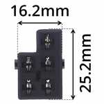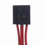 Utiliza internamente cinco terminais AMP Standard Power Timer 6.3mm. Para remover os terminais, é necessário desacoplar a trava amarela na lateral do chicote.