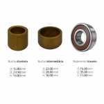 | Conteúdo da embalagem | 1 (uma) bucha dianteira de 15.80 x 23.90 x 19.00 mm nova 1 (uma) bucha intermediária de 22.00 x 28.00 x 16.00 mm nova 1 (um) rolamento traseiro fixo de esferas (número 6202) de 15.00 x 35.00 x 11.00 mm novo |