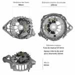 O mancal traseiro faz o fechamento do alternador. Cada mancal é feito com uma estrutura que assegura a absorção de esforços radiais e axiais e permite os regimes de rotação que o motor exige.