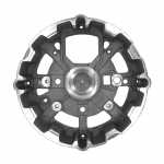 O mancal traseiro faz o fechamento do alternador. Cada mancal é feito com uma estrutura que assegura a absorção de esforços radiais e axiais e permite os regimes de rotação que o motor exige.