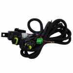 Kit com dois faróis auxiliares lado direito e esquerdo, botão interruptor, moldura e chicote.