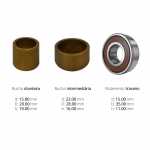 | Conteúdo da embalagem | 1 (uma) bucha dianteira de 15.80 x 20.60 x 19.00 mm nova 1 (uma) bucha intermediária de 22.00 x 28.00 x 16.00 mm nova 1 (um) rolamento traseiro fixo de esferas (número 6202) de 15.00 x 35.00 x 11.00 mm novo |