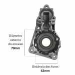 | Conteúdo da embalagem | 1 (um) mancal dianteiro novo 1 (uma) bucha já acoplado ao mancal nova 1 (um) retentor de borracha já acoplado ao mancal novo |