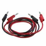 Par de cabos flexíveis com plug tipo banana em cada extremidade.