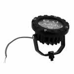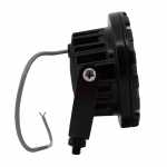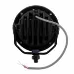 Farol auxiliar redondo de LED com carcaça de alumínio e lente de policarbonato.