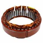 No estator é produzida a corrente elétrica do alternador, induzida pelo campo magnético que age nos fios das bobinas do estator.