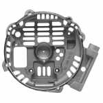 O mancal traseiro faz o fechamento do alternador. Cada mancal é feito com uma estrutura que assegura a absorção de esforços radiais e axiais e permite os regimes de rotação que o motor exige.