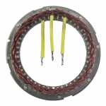 No estator é produzida a corrente elétrica do alternador, induzida pelo campo magnético que age nos fios das bobinas do estator.