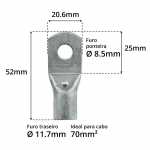 Este terminal é apropriado para cabos de bitola (seção nominal) de 70mm².
