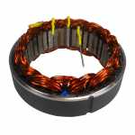 No estator é produzida a corrente elétrica do alternador, induzida pelo campo magnético que age nos fios das bobinas do estator.