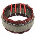 No estator é produzida a corrente elétrica do alternador, induzida pelo campo magnético que age nos fios das bobinas do estator.