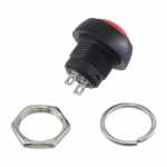 DiversosELBT0001Botão/interruptor de buzina e esguicho universal redondo com retorno vermelho diâmetro 17.5mm para furo 12mm 10A 12Vdc / 10A 24Vdc / 4A 110Vac / 2A 220Vac