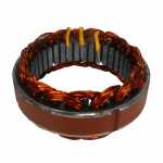 No estator é produzida a corrente elétrica do alternador, induzida pelo campo magnético que age nos fios das bobinas do estator.