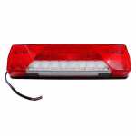 BrasluxBL8042.LD.100Lanterna traseira multifunção (freio / pisca / posição / ré) LED 12V retangular 372x104mm bicolor (cristal / vermelha) lado direito sem luz de placa com luz de neblina com conector e conexão de fio Agrale universal caminhão carreta carroceria implemento r