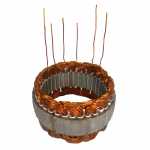 No estator é produzida a corrente elétrica do alternador, induzida pelo campo magnético que age nos fios das bobinas do estator.