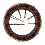 No estator é produzida a corrente elétrica do alternador, induzida pelo campo magnético que age nos fios das bobinas do estator.