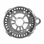 O mancal traseiro faz o fechamento do alternador. Cada mancal é feito com uma estrutura que assegura a absorção de esforços radiais e axiais e permite os regimes de rotação que o motor exige.