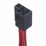 Utiliza internamente cinco terminais AMP Standard Power Timer 6.3mm. Para remover os terminais, é necessário desacoplar a trava amarela na lateral do chicote.