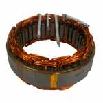 No estator é produzida a corrente elétrica do alternador, induzida pelo campo magnético que age nos fios das bobinas do estator.
