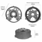 O mancal traseiro faz o fechamento do alternador. Cada mancal é feito com uma estrutura que assegura a absorção de esforços radiais e axiais e permite os regimes de rotação que o motor exige.