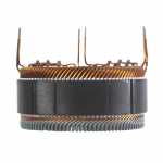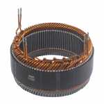 No estator é produzida a corrente elétrica do alternador, induzida pelo campo magnético que age nos fios das bobinas do estator.