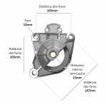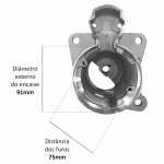 O mancal dianteiro fixa o motor de partida no veículo, além de sustentar o conjunto. Cada mancal é feito com uma estrutura que assegura a absorção de esforços radiais e axiais e permite os regimes de rotação que o motor exige.
