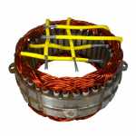 No estator é produzida a corrente elétrica do alternador, induzida pelo campo magnético que age nos fios das bobinas do estator.