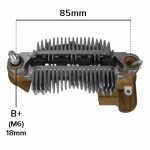 Nota: o parafuso B+ deste retificador tem 18mm de comprimento, medidos da ponta do parafuso até a superfície do retificador. O retificador suporta até 105A, tem 8 diodos de 35A cada, não possui triodo, não possui capacitor e tem parte plástica.