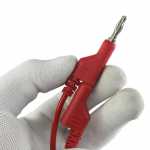 Par de cabos flexíveis com plug tipo banana em cada extremidade.