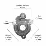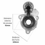O mancal dianteiro fixa o motor de partida no veículo, além de sustentar o conjunto. Cada mancal é feito com uma estrutura que assegura a absorção de esforços radiais e axiais e permite os regimes de rotação que o motor exige.