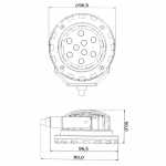 Farol auxiliar redondo de LED com carcaça de alumínio e lente de policarbonato.