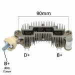 Nota: o parafuso B+ deste retificador tem 15mm de comprimento, medidos da ponta do parafuso até a base do encaixe que acopla no retificador. O retificador suporta até 105A, possui capacitor, possui triodo e tem 8 diodos avalanche de 35A cada.