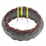 No estator é produzida a corrente elétrica do alternador, induzida pelo campo magnético que age nos fios das bobinas do estator.